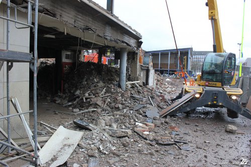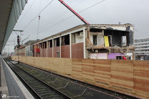 Auf Gleisseite gehen die Abbrucharbeiten nun auch stetig weiter, dieser Teil soll komplett verschwinden, größtenteils auch links von der Empfangshalle: